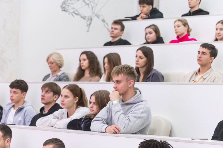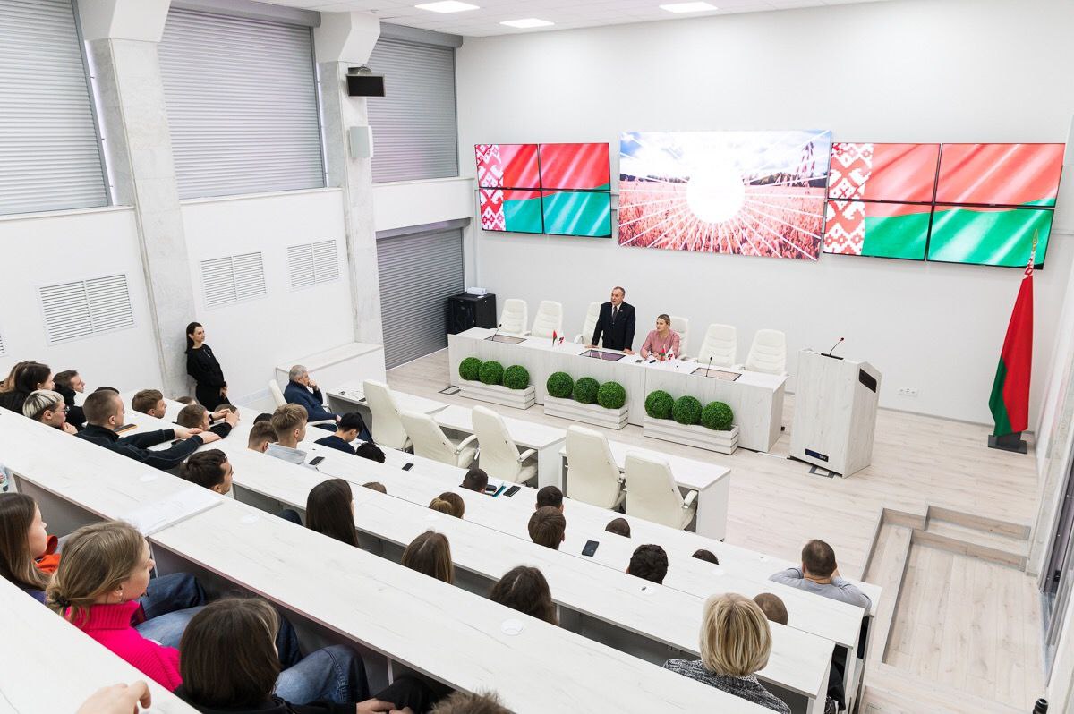 19 ноября более 70 студентов и педагогов обсудили достижения суверенной Беларуси с председателем Центральной «Белой Руси» Галиной Гузовской и проректором по воспитательной работе Владимиром Прилепиным во время диалоговой площадки.