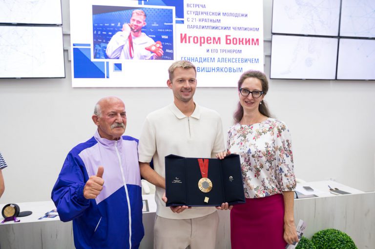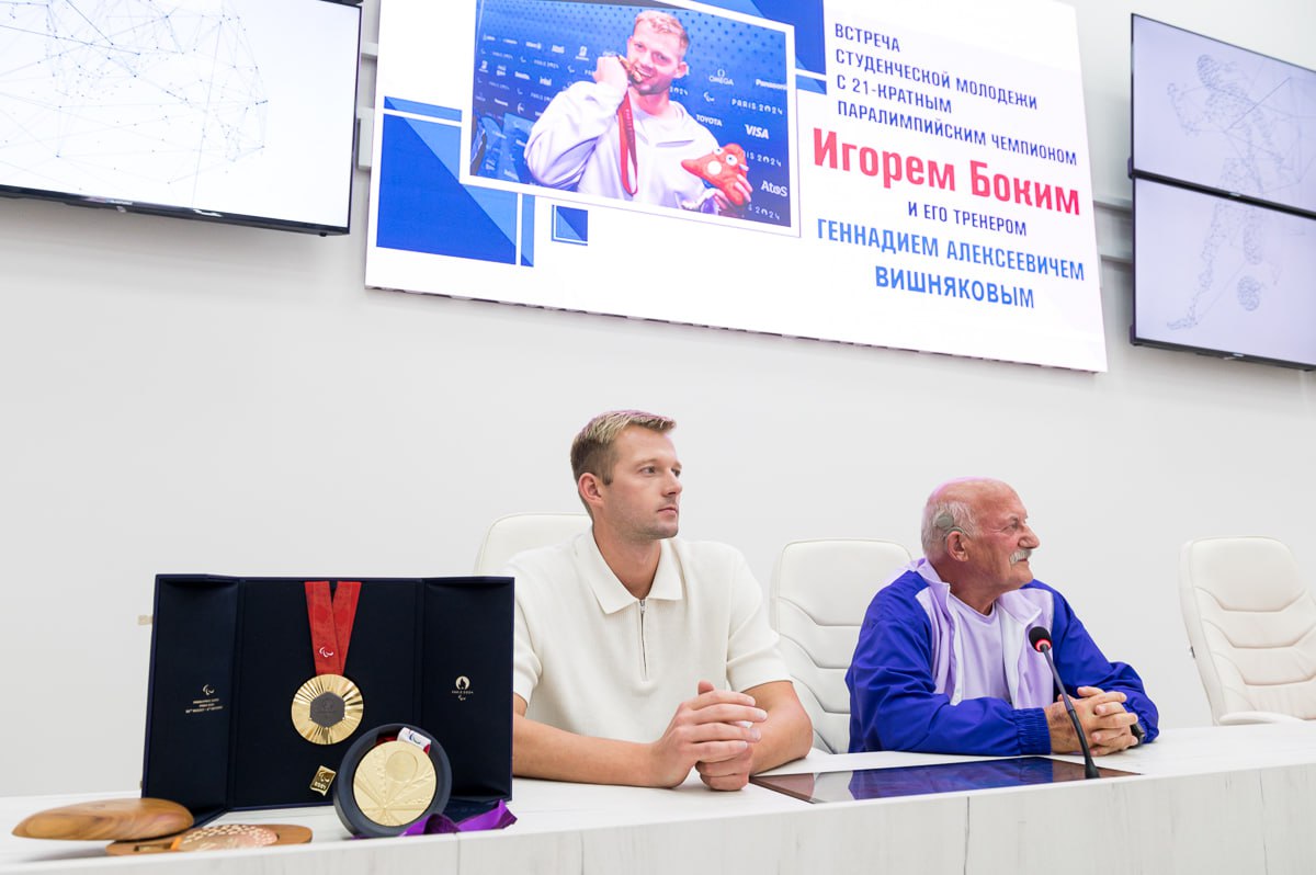 В ходе общения Игорь Бокий поделился своей вдохновляющей историей, путешествием к вершинам спорта, преодолением трудностей и о том, как важно верить в себя. Также Игорь отметил, что каждая из 5 завоеванных медалей в Париже была достигнута благодаря упорству, вере в себя и поддержки тренера, близких, друзей и коллег. Не будем скрываться, что его скромность, оптимизм и целеустремленность вызывают восторг и гордость.