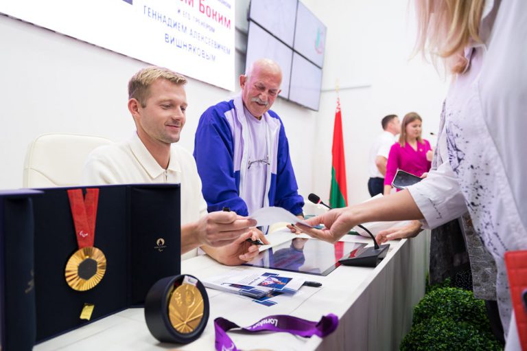 У каждого участника встречи осталось памятное фото с почетными гостями и автограф от Игоря Бокого, заслуженного паралимпийца Беларуси.