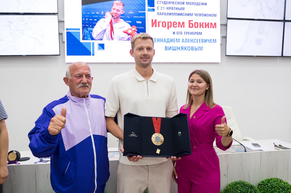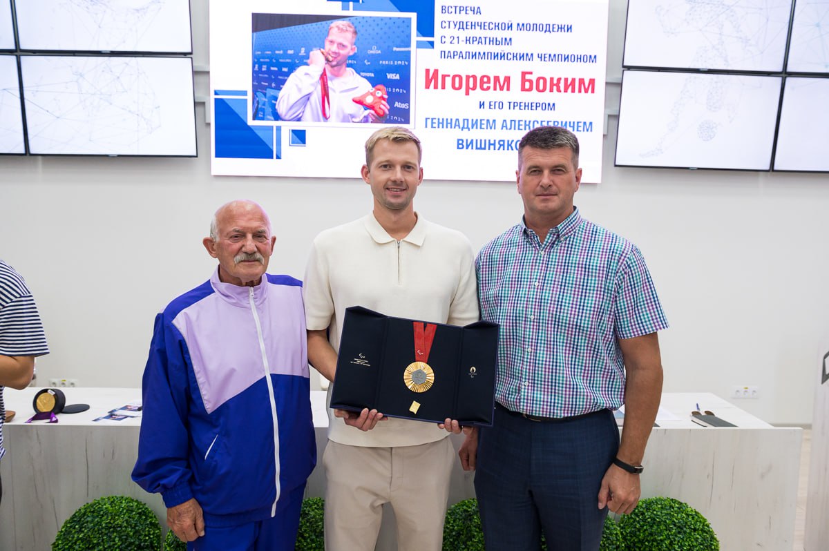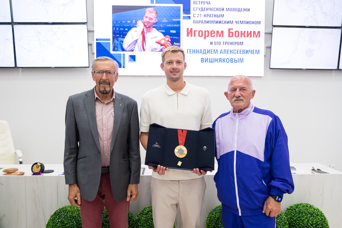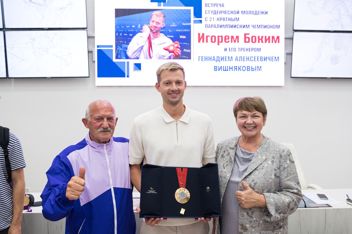 В ходе общения Игорь Бокий поделился своей вдохновляющей историей, путешествием к вершинам спорта, преодолением трудностей и о том, как важно верить в себя. Также Игорь отметил, что каждая из 5 завоеванных медалей в Париже была достигнута благодаря упорству, вере в себя и поддержки тренера, близких, друзей и коллег. Не будем скрываться, что его скромность, оптимизм и целеустремленность вызывают восторг и гордость.