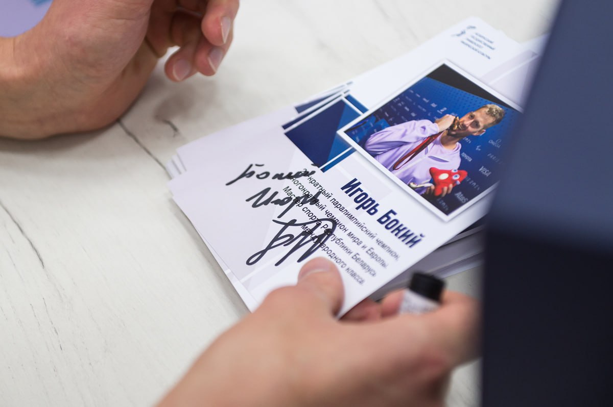 У каждого участника встречи осталось памятное фото с почетными гостями и автограф от Игоря Бокого, заслуженного паралимпийца Беларуси.