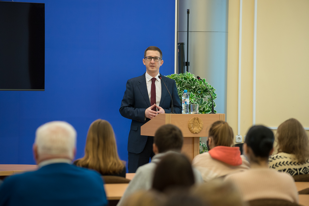 17 декабря в университете состоялась встреча студентов и сотрудников университета с прокурором Центрального района города Минска Олегом Васильевичем Кондаревичем.