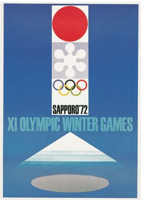 Сюжет олимпийского плаката – снежная горная вершина в сочетании с эмблемой Игр, за основу взята стилизованная снежинка. Автором композиции стал Такаши Коно.