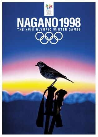 Для Олимпиады в Нагано было напечатано 5 разновидностей официальных постеров и 7 постеров на спортивную тематику. В дополнение ко всему, впервые за всю историю Олимпийских игр, специально для церемонии открытия был создан отдельный плакат. Первый проект плаката был создан специально для того, чтобы стать официальным плакатом XVIII зимних Олимпийских игр, а также для последующей его передачи будущему поколению. На плакате на фоне гор на рассвете изображен дрозд, восседающий на лыжной палке. В плакате заложена концепция гармонии человека с природой. Разработчиком постера является Масутеру Аоба.