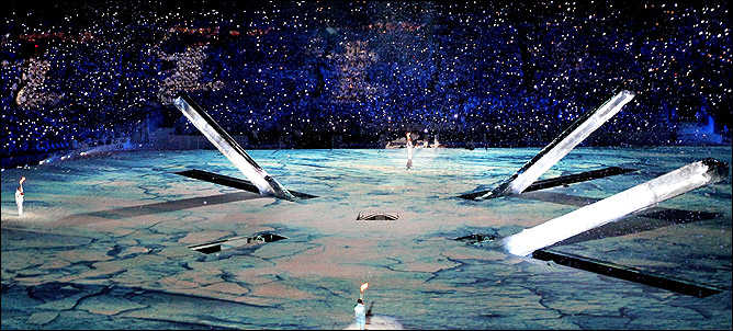 На церемонии открытия одна из четырёх колонн не поднялась из-под сцены – и огонь зажигали лишь трое знаменитых канадцев вместо четырёх изначально запланированных. Уэйн Гретцки, Стив Нэш и Нэнси Грин свою миссию выполнили, а вот конькобежка Катрине Лемэй-Доан осталась в стороне. На церемонии закрытия канадцы исправились и показали себя людьми, не обделёнными чувством юмора. Перед началом церемонии закрытия в центре арены стояли все те же три колонны. Из отверстия вылез механик в костюме клоуна. Или клоун в роли механика – как угодно. Он изобразил сверхусилие и поднял из-под земли колонну. Надо было слышать, каким восторгом взорвался зал! Лемэй-Доан всё-таки зажгла олимпийский огонь, пусть ему и оставалось гореть не больше часа.