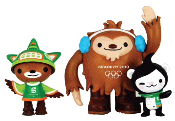 Талисманами Игр выступили трое животных: Мига (англ. Miga) – вымышленный морской медведь, наполовину косатка, наполовину белый барибал, Куатчи (англ. Quatchi) – бигфут, происходящий из канадских лесов и мечтающий стать хоккейным игроком, Суми (англ. Sumi) – «дух животных», в нём соединены многие представители фауны канадского тихоокеанского побережья, он является параолимпийским талисманом Игр.