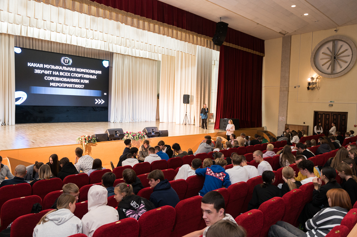 17 октября в актовом зале университета квиз объединил 33 студенческие группы первого курса, а это порядка 260 человек. Он состоял из 5 блоков: очень простого, простого, среднего, сложного и очень сложного. Все вопросы были связаны с университетом и спортом в целом.