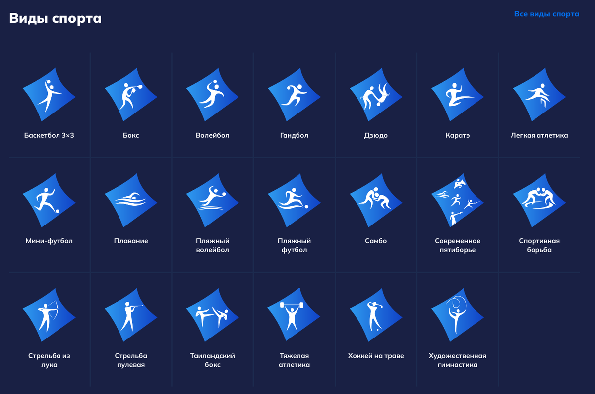 Чемпионы и призеры будут определены в 20 видах спорта: легкая атлетика, волейбол, художественная гимнастика, пулевая стрельба, пляжный футбол, современное пятиборье, баскетбол 3х3, мини-футбол, спортивная борьба, пляжный волейбол, гандбол, плавание, таиландский бокс, бокс, дзюдо, самбо, хоккей на траве, тяжелая атлетика, стрельба из лука, каратэ.