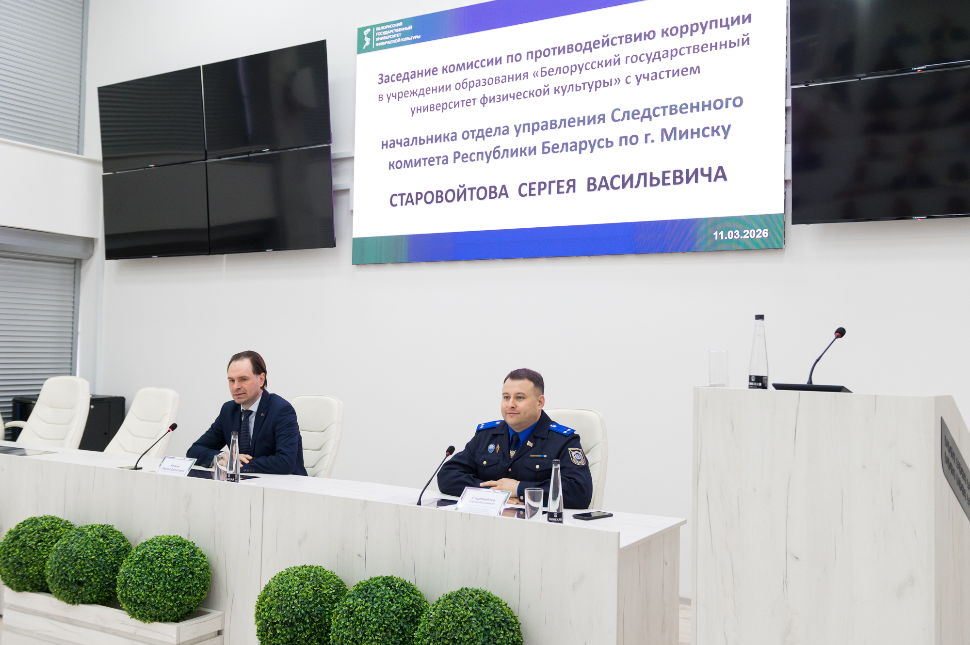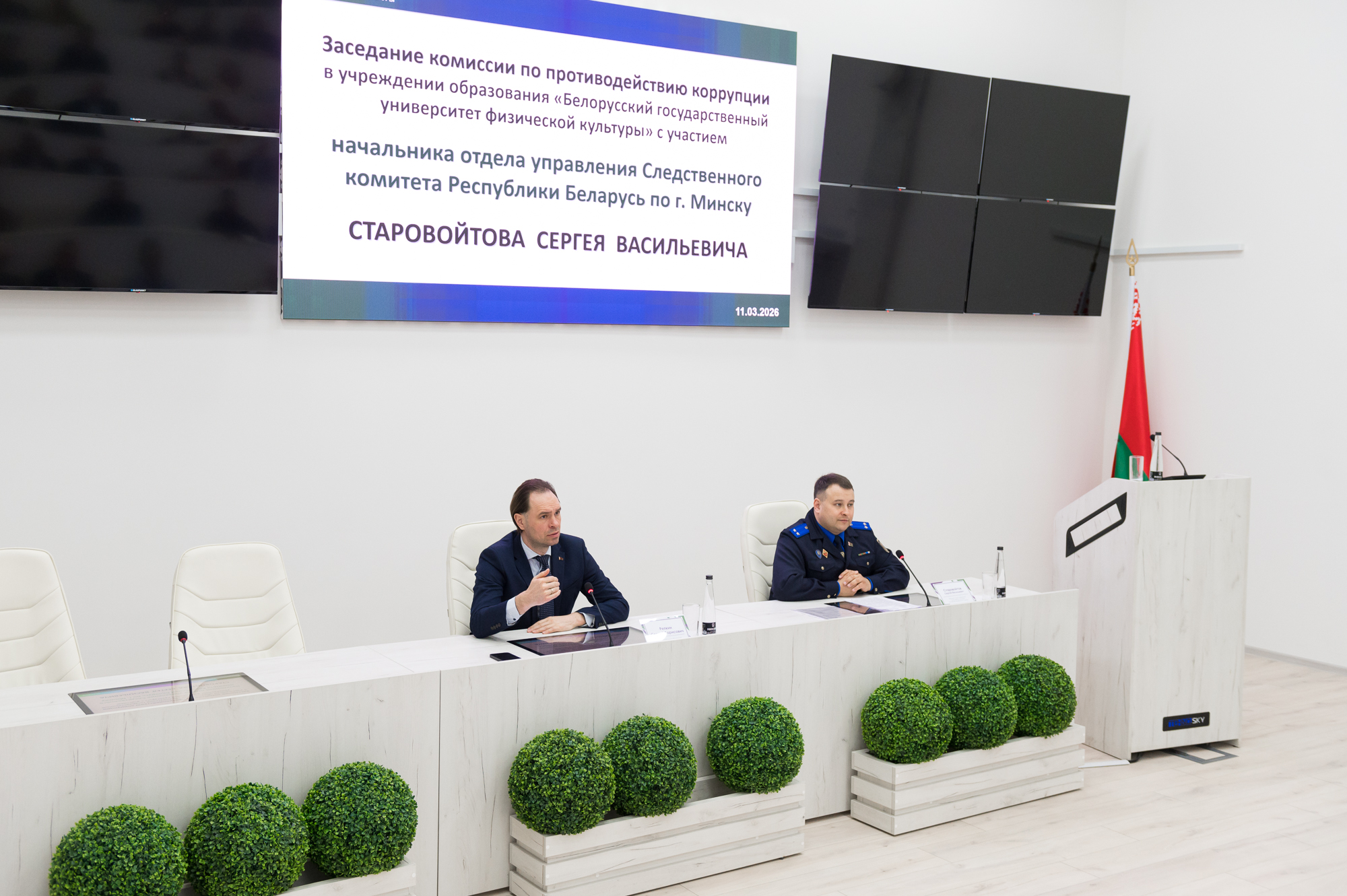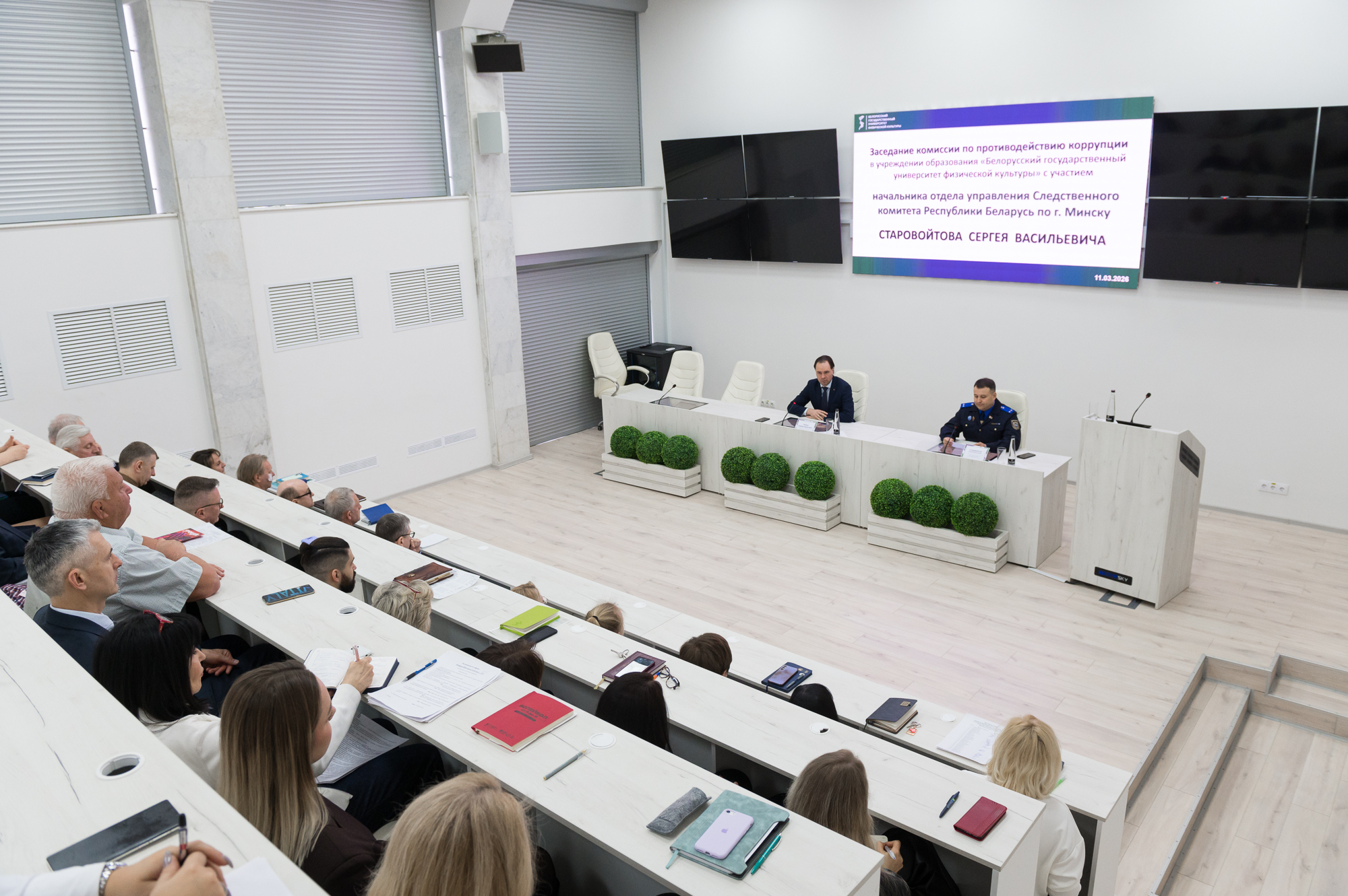 11 марта в зале совета университета прошло заседание комиссии по противодействию коррупции, в котором принял участие начальник отдела управления Следственного комитета Республики Беларусь по г.Минску Сергей Васильевич Старовойтов.