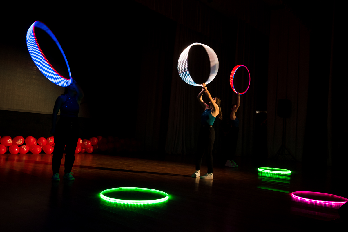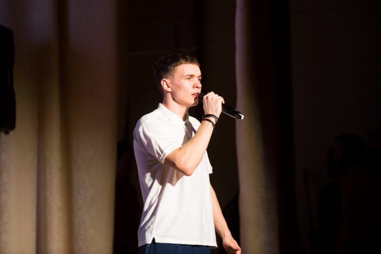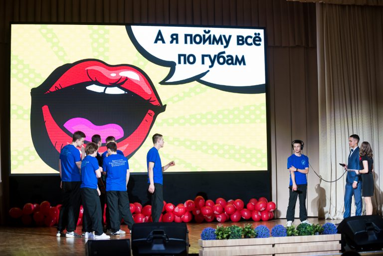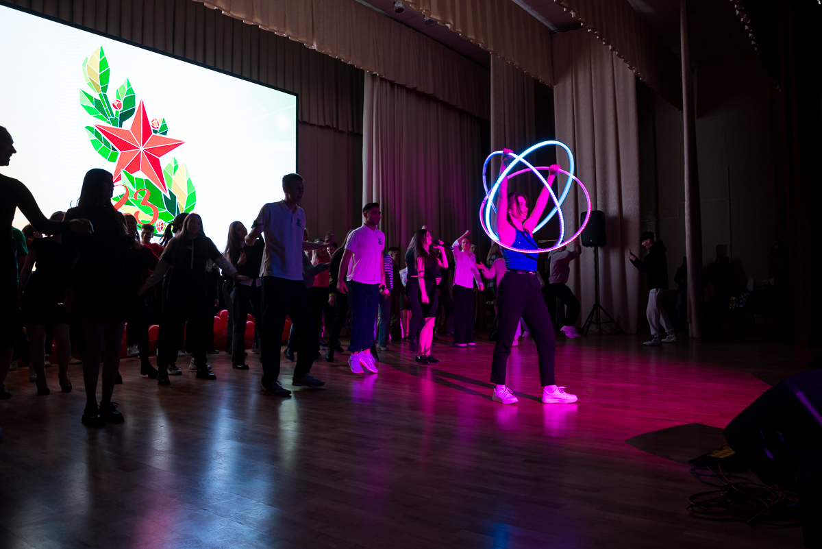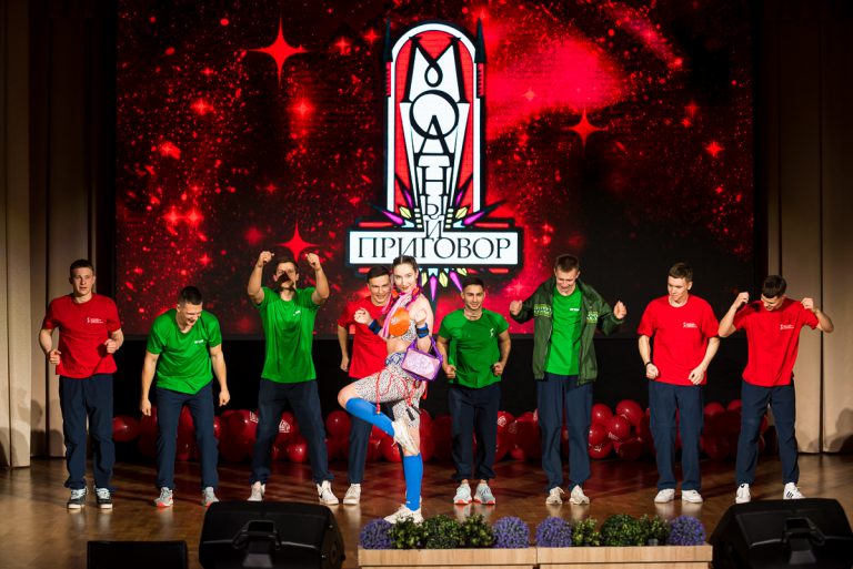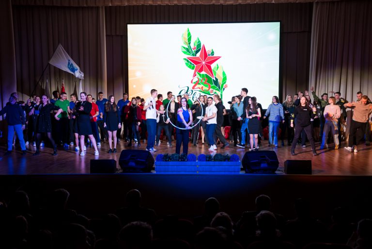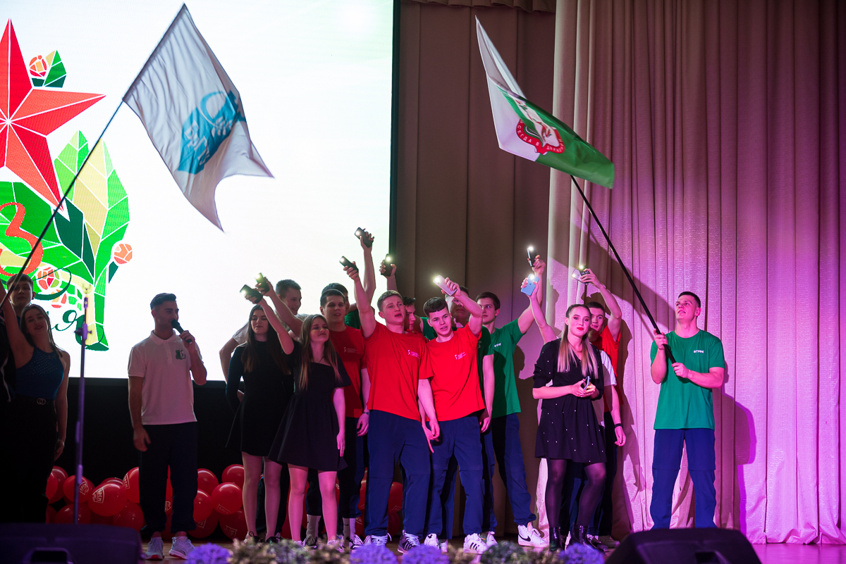 На сцене актового зала в творческих конкурсах состязались три команды студентов: