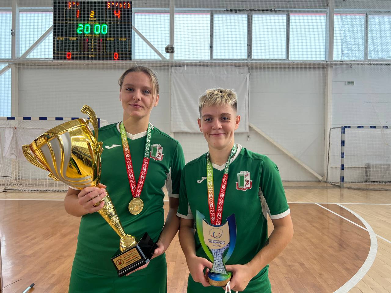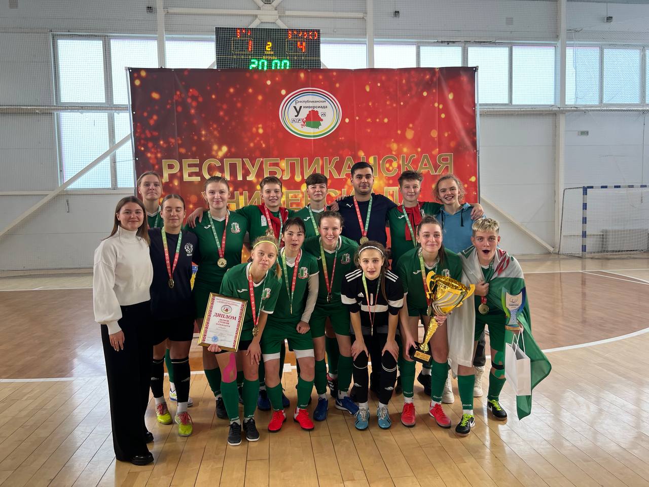 Сборная команда университета одержала победу и стала Чемпионом универсиады по мини-футболу. В финале команда сразилась с девушками из БГУ. Отметим, что игра шла «на равных» и в основное время матча закончился ничьей 2-2, но в серии после матчевых пенальти оказалась сильнее наша сборная со счетом 4-1 и забрала титул победителя.